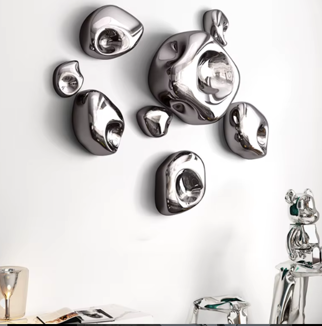3D Abstract Metal Wall Art Colorful Stainless Steel Ball Combination Wall Decor-Silver