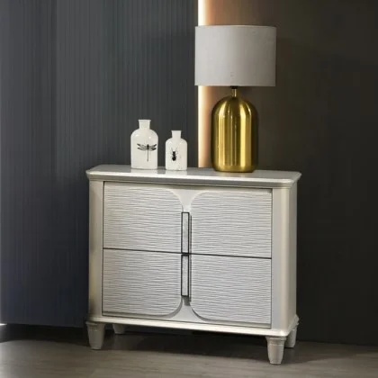 Step into a realm of elegance with the Laveda bedroom set, where light gray boucle meets a pearl white finish for an exquisite blend of sophistication and serenity. The clean lines and contemporary design create a harmonious balance, perfect for modern interiors. Laveda's luxurious textures and refined aesthetics transform any bedroom into a tranquil sanctuary, offering both comfort and style in every detail.