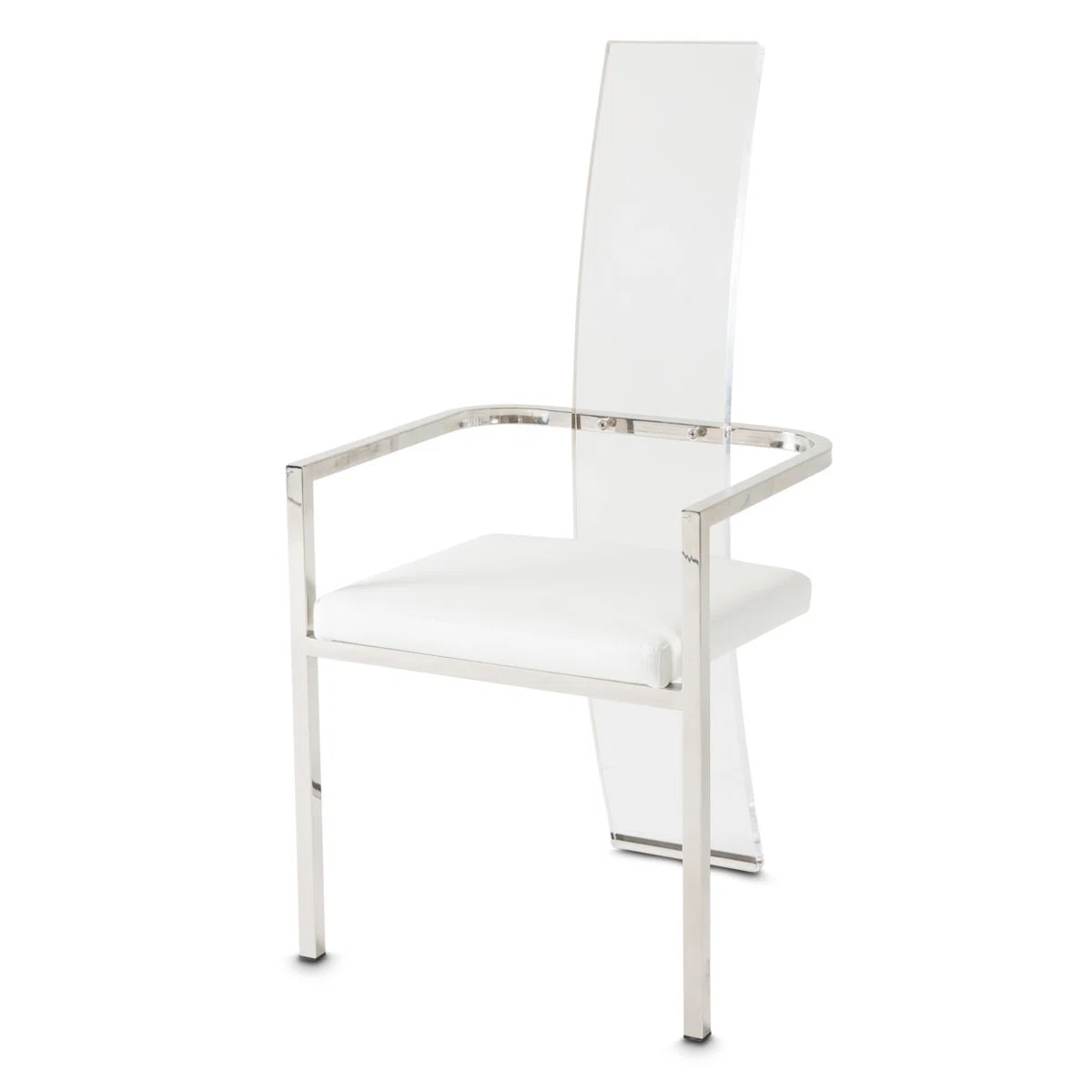 Contemporary style should be noticed. With this State St. Arm Chair, enjoy an extra-tall acrylic backrest that sweeps to the floor, and gleaming stainless steel legs with your favorite dining table.