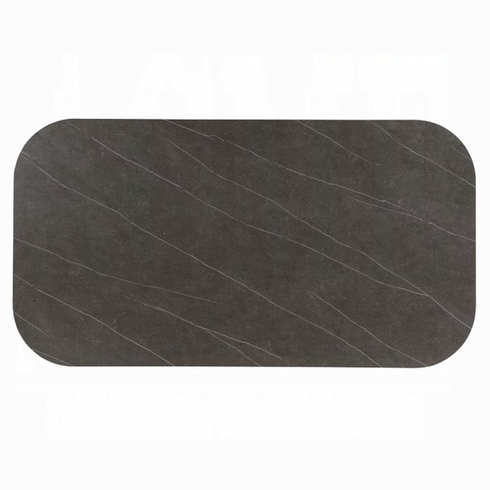 Gather friends and family around the Kasa dining table. This dining table features a double pedestal base and a smooth sintered-stone rounded-edge tabletop. The pedestals are lightly padded, and diamond quilted with synthetic leather. It is finished in a champagne color that adds a stylish touch. The stone tabletop showcases a beautiful variation of veins for a subtle contrast. Comfortably accommodates eight people.