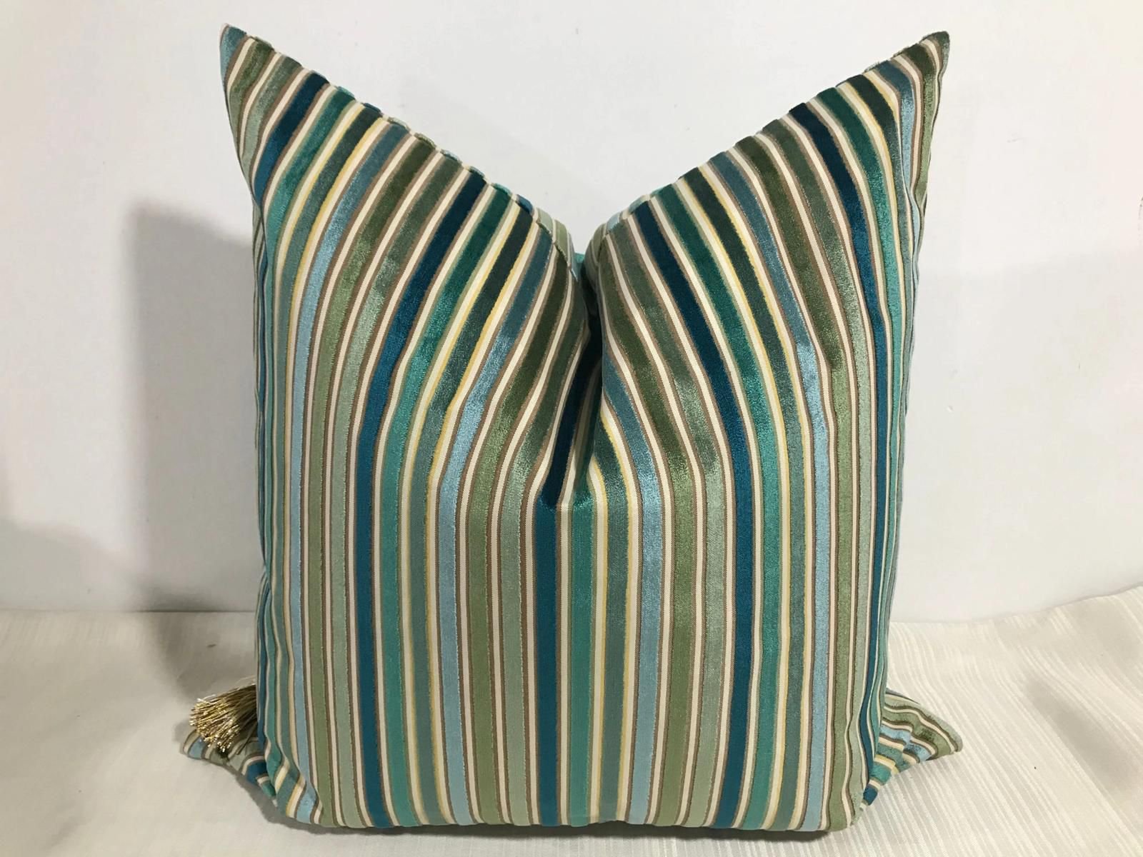 Teal & Gold Striped Pillow