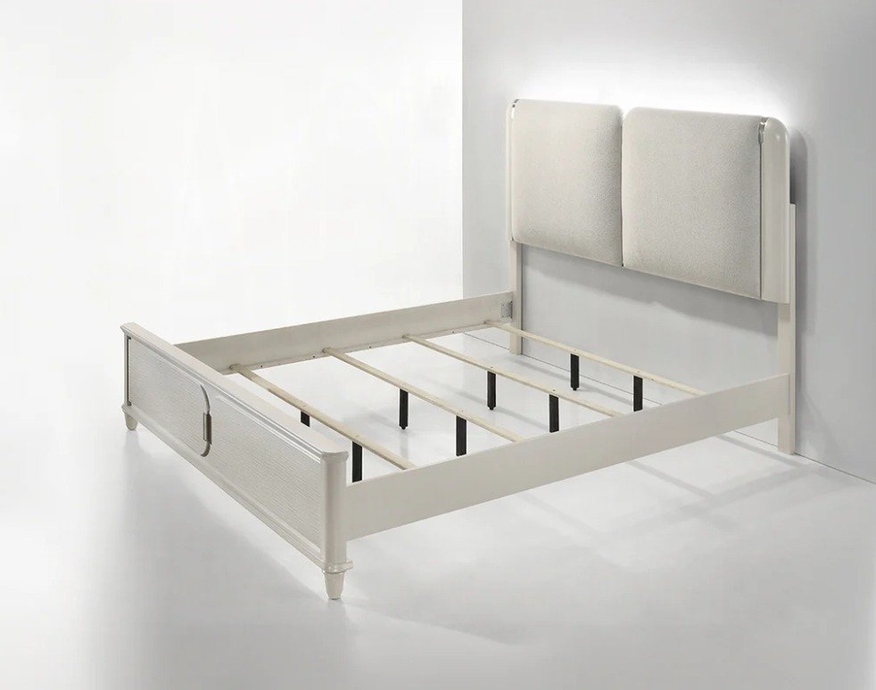 Step into a realm of elegance with the Laveda bedroom set, where light gray boucle meets a pearl white finish for an exquisite blend of sophistication and serenity. The clean lines and contemporary design create a harmonious balance, perfect for modern interiors. Laveda's luxurious textures and refined aesthetics transform any bedroom into a tranquil sanctuary, offering both comfort and style in every detail.