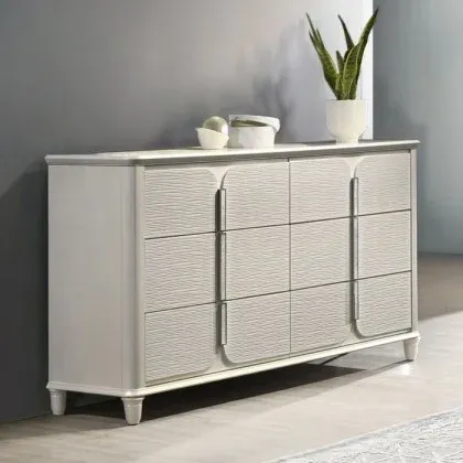 Step into a realm of elegance with the Laveda bedroom set, where light gray boucle meets a pearl white finish for an exquisite blend of sophistication and serenity. The clean lines and contemporary design create a harmonious balance, perfect for modern interiors. Laveda's luxurious textures and refined aesthetics transform any bedroom into a tranquil sanctuary, offering both comfort and style in every detail.