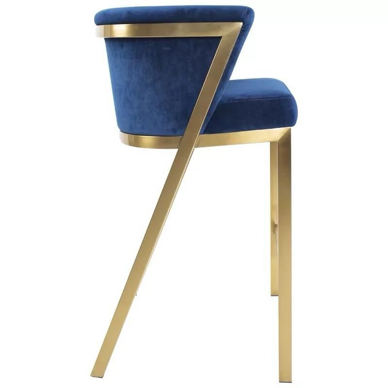 Sit in style with this beautiful, mid-century designed barstool. Blue velvet seating is complimented by a gold finish, brushed stainless steel creating a timeless design with a modern twist. Perfect addition to any kitchen island or bar area. Feel classy while sitting in this comfortable and sturdy barstool.
