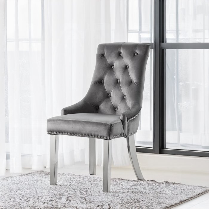 Finish: Gray Fabric & Mirrored Silver Finish