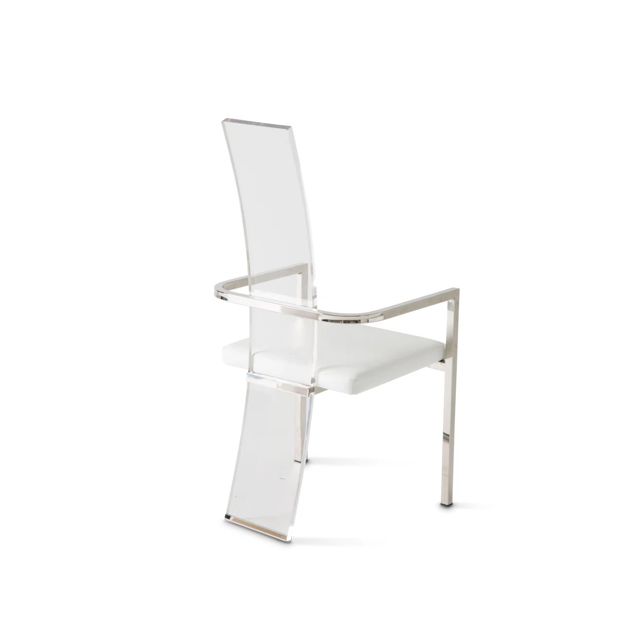 Contemporary style should be noticed. With this State St. Arm Chair, enjoy an extra-tall acrylic backrest that sweeps to the floor, and gleaming stainless steel legs with your favorite dining table.