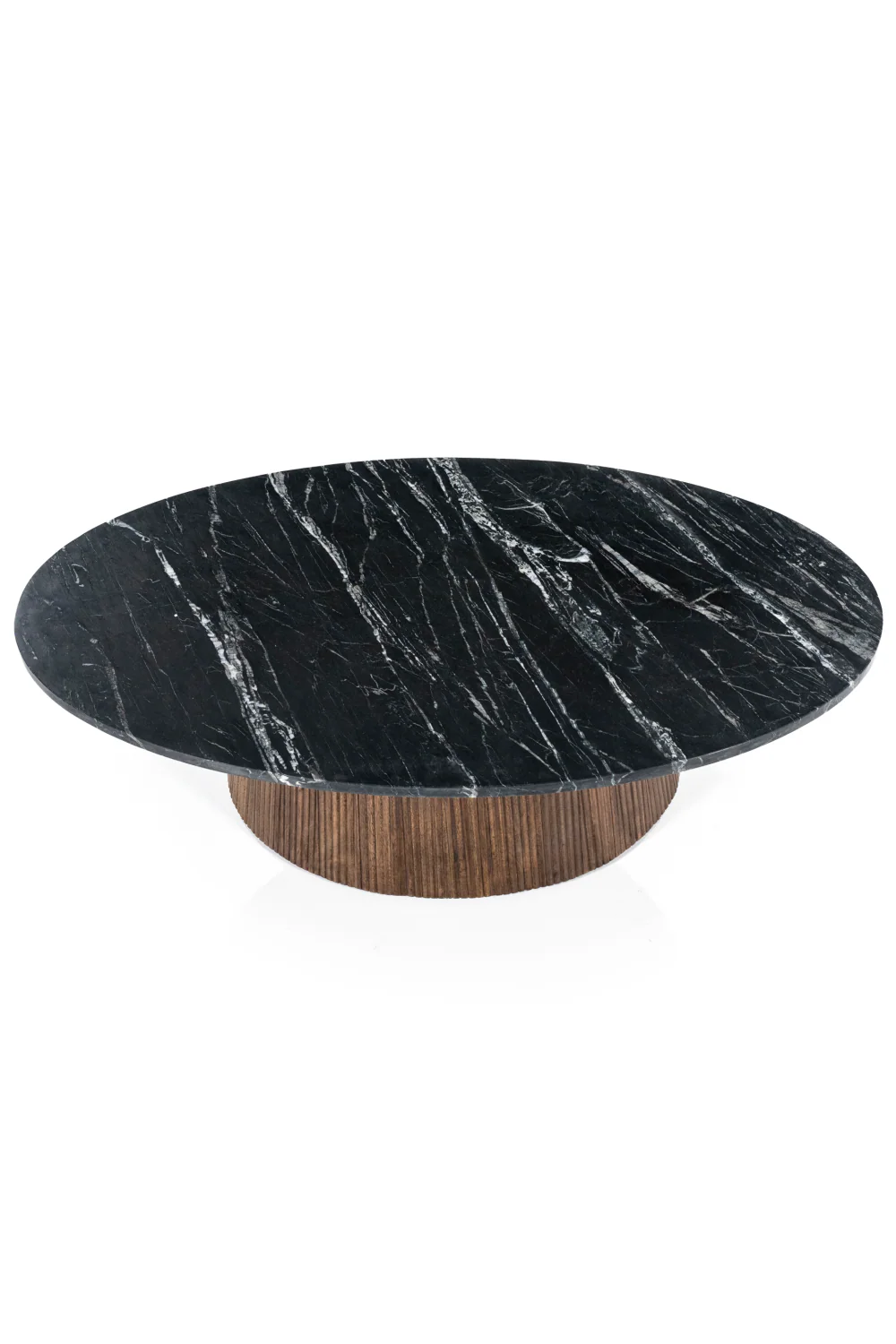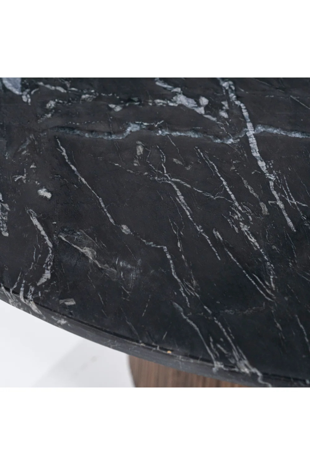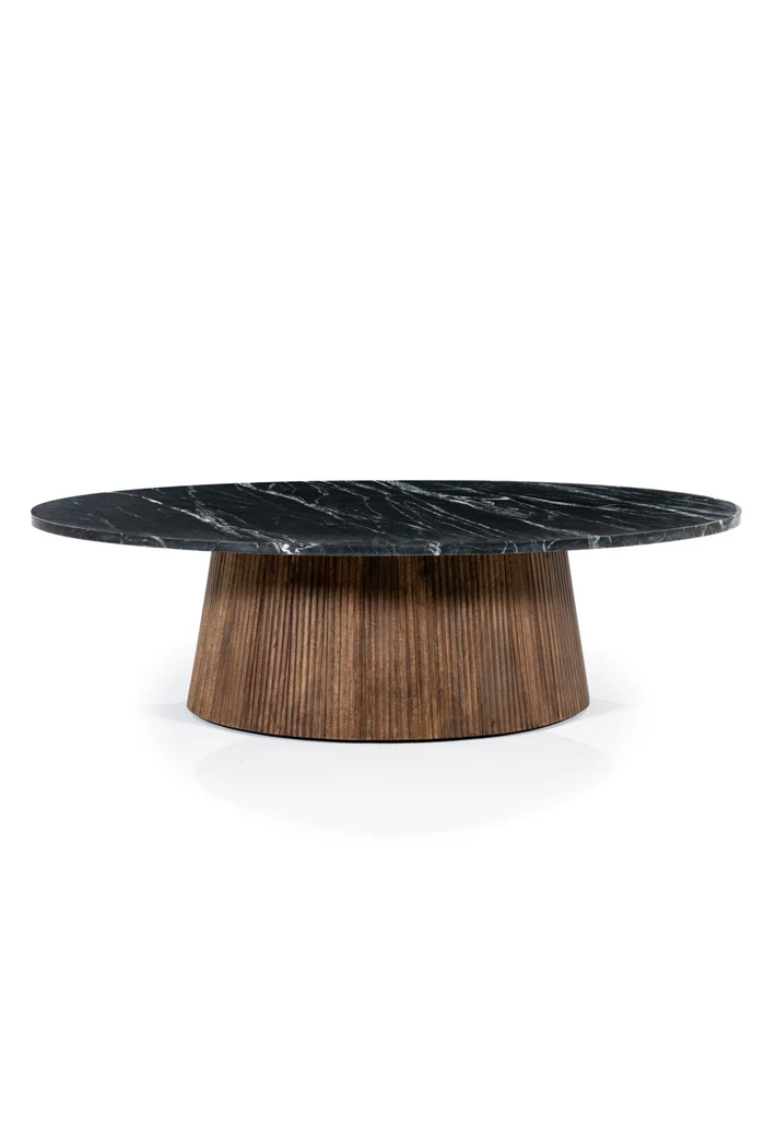 Carries with it such a fine charm. With an oval black marble top and mango wood pedestal base, this piece is a stylish and functional item to add to your home.