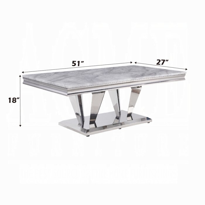 Contemporary flair breathes new life and interest into traditional design. The perfect combination of beauty and style features classic pedestal base topped with light grey marble. Updated modern touches are seen throughout the table base, such as sleek, uncluttered lines and shiny stainless steel. The elegant marble table top seduces the senses, complements your centerpiece or other table decorations perfectly. Give your space a refresh with Satinka Coffee Table?