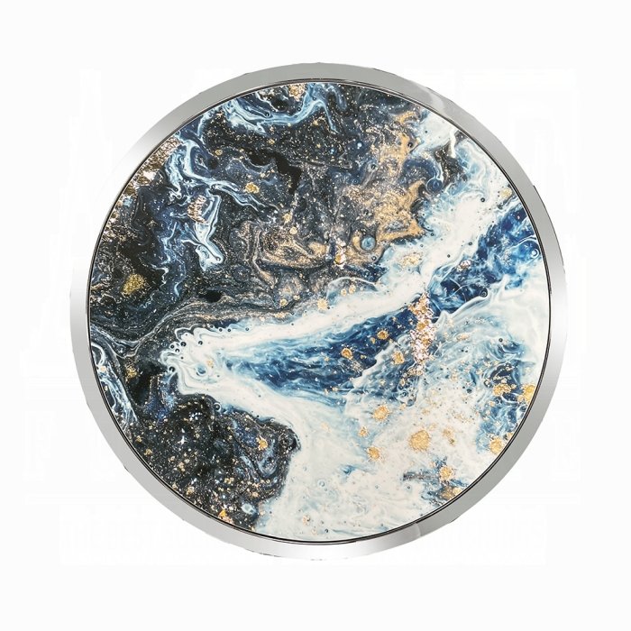 This stunning Lyda end table will not go unnoticed, with its eye-catching styling which is sure to impress the home interior enthusiasts. The spherical chrome finish base complements the elegant blue faux marble surface. The two materials blend masterfully to create this elegant effect which, while eye-catching, still has the potential to be incorporated into many different interior décor styles and approaches.